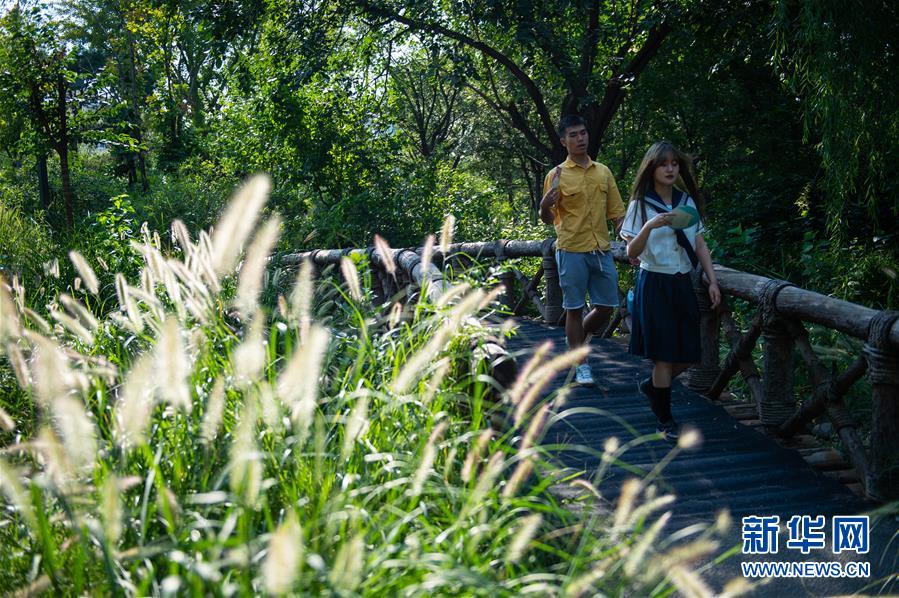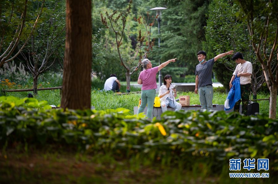 8月28日,市民在位于西城区的西海湿地公园休闲。 近年来,北京因地制宜地开展公园绿地建设,扩大城市的绿色空间,在北京城市核心区和中心城区,通过留白增绿、见缝插绿,改善了百姓身边的生态环境。截至目前,北京城乡各类公园已达1050个,建成“口袋公园”“小微绿地”400多个。2020年底,北京市公园绿地500米服务半径覆盖率将提高到85%,人均公共绿地面积达16.5平方米。 新华社记者 陈钟昊 摄