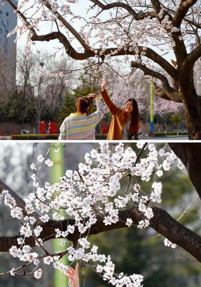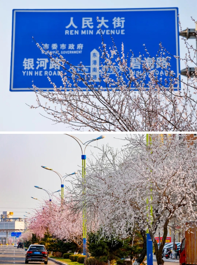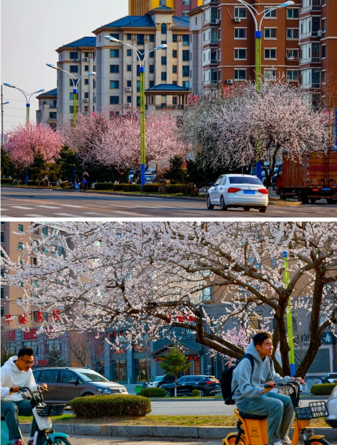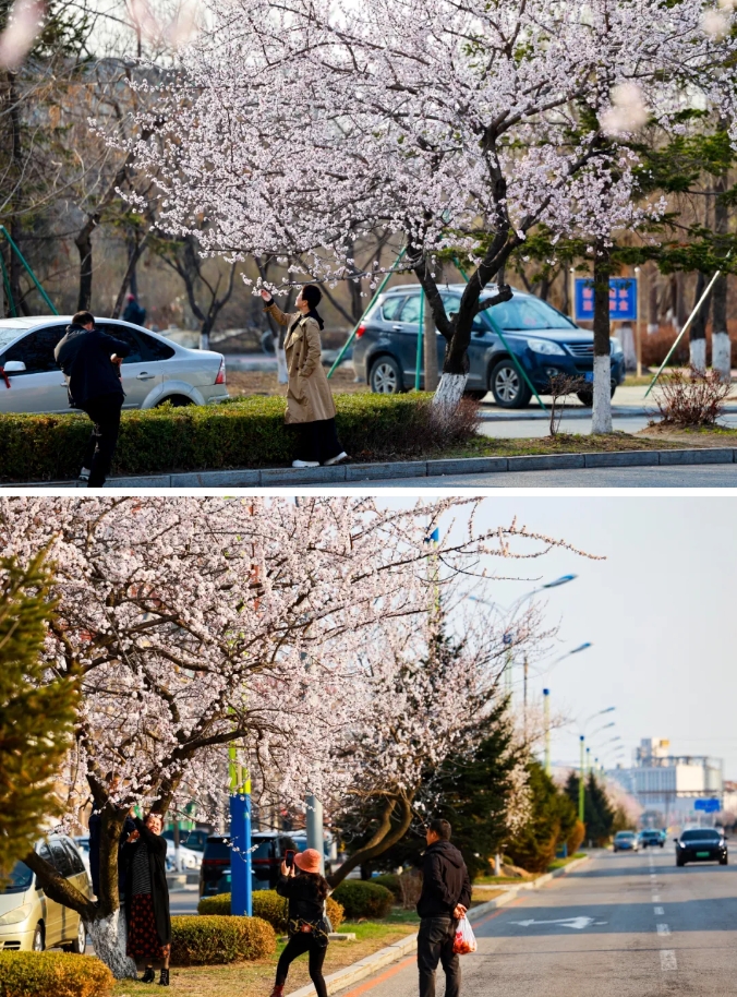 4月5日,在东港南路两侧路边的绿化带里,绚烂的京桃花陆续绽放,或粉或白的花朵缀满枝头,吸引了许多市民前来赏花踏青,徜徉在花的海洋,感受春的美好。
