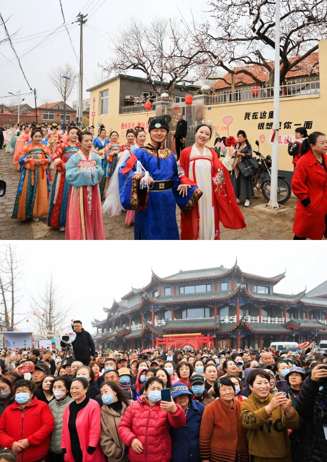 开幕式上,演员们献上了《我在东港等你》《杏梅花开》等文艺节目。与此同时,古韵街还设立了杏福梅满•毓秀孤山、杏福梅满•梦回大唐、千年古镇•灵秀孤山、杏福梅满•书香孤山、杏福梅满•多才孤山等六大场景沉浸式表演。
