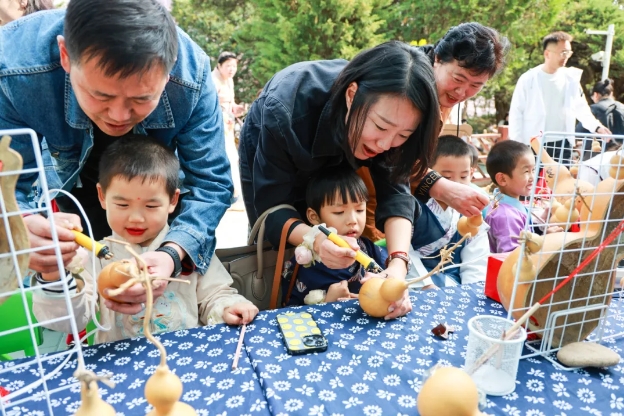 小朋友与家长们穿着汉服,欣赏凤城满族荷包、丹东剪纸,体验满族传统小吃制作技艺、丹东糖人等15个省市非遗项目,在充满诗意雅韵的氛围中感受浓郁古朴的非遗文化,探索中国传统手工艺之美。