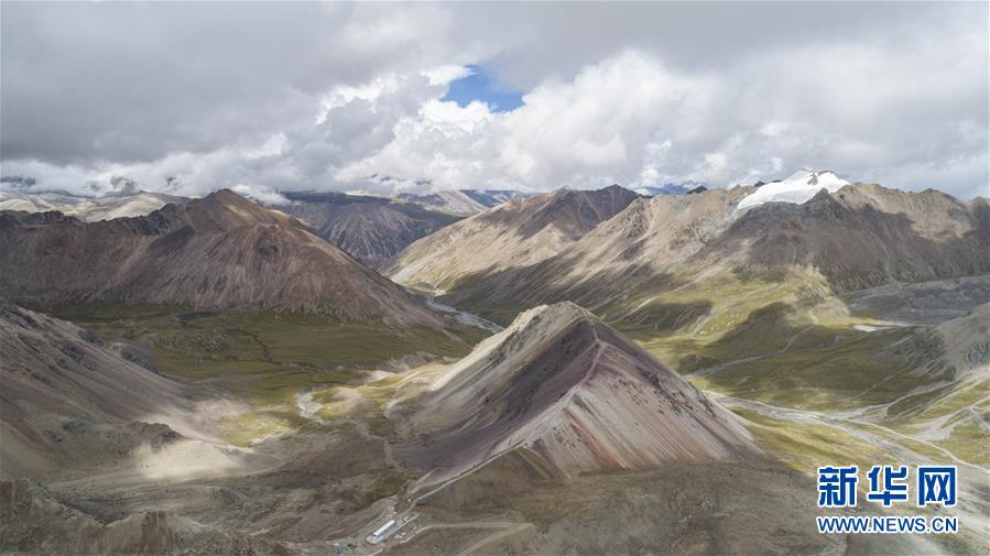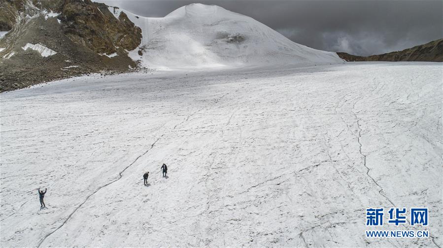 这是廓琼岗日冰川公园内一景(8月30日摄,无人机照片)。 廓琼岗日冰川公园位于西藏当雄县格达乡境内,海拔约5500米,距拉萨约160公里,是一处集冰川、雪山、湖泊、草甸于一体的独具特色的自然生态旅游区。在公园内,游客可以与冰川近距离接触,并可亲身体验攀登的乐趣。 新华社记者 孙非 摄