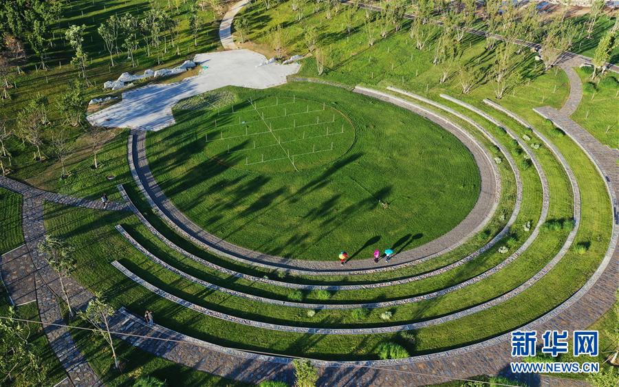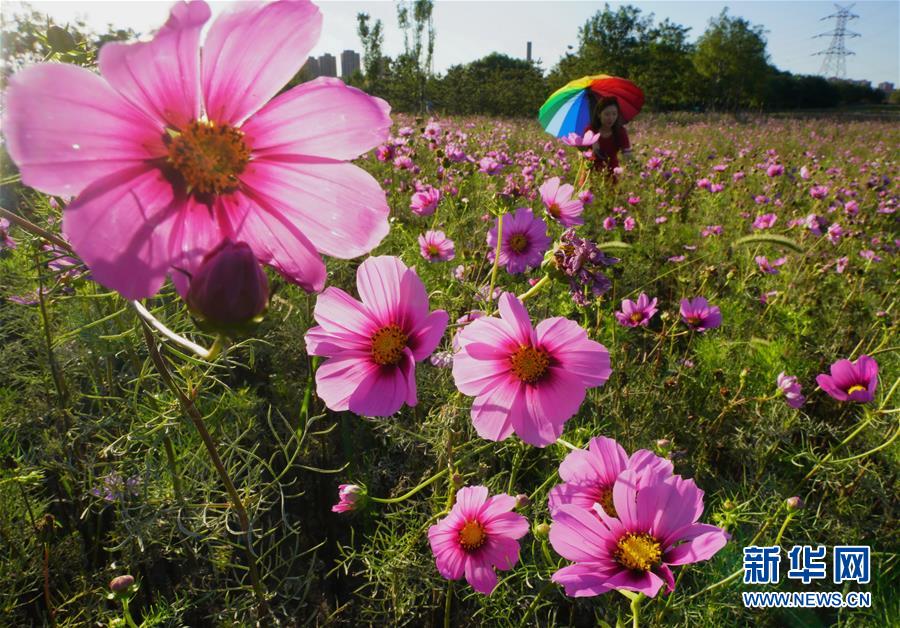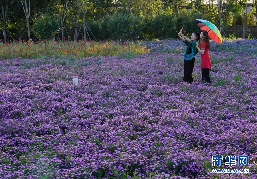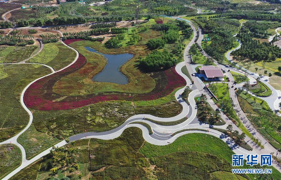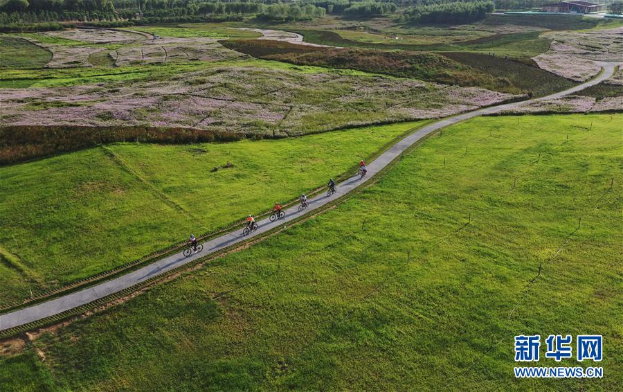9月17日,自行车骑行爱好者在唐山市开平区东湖区域花海景区骑行(无人机照片)。 2018年以来,河北省唐山市开平区为根治东湖区域百年老矿开滦马家沟矿煤炭开采区的恶劣生态环境,先后清理“散乱污”企业72家,无名场院327家,着力打造“城市后花园”,取得良好效果。目前,该区域花海如画,吸引众多市民前来休闲观光,成为生态城市建设的新名片。 新华社记者 杨世尧 摄