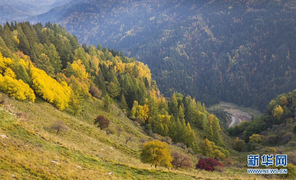 位于山西省宁武县的芦芽山森林资源丰富,被誉为“天然氧吧”。金秋时节,这里被秋意浸染,山谷、林间如梦如幻,宛若一幅画卷。这里森林资源丰富,被誉为“天然氧吧”。新华网 发(曹建国 摄)