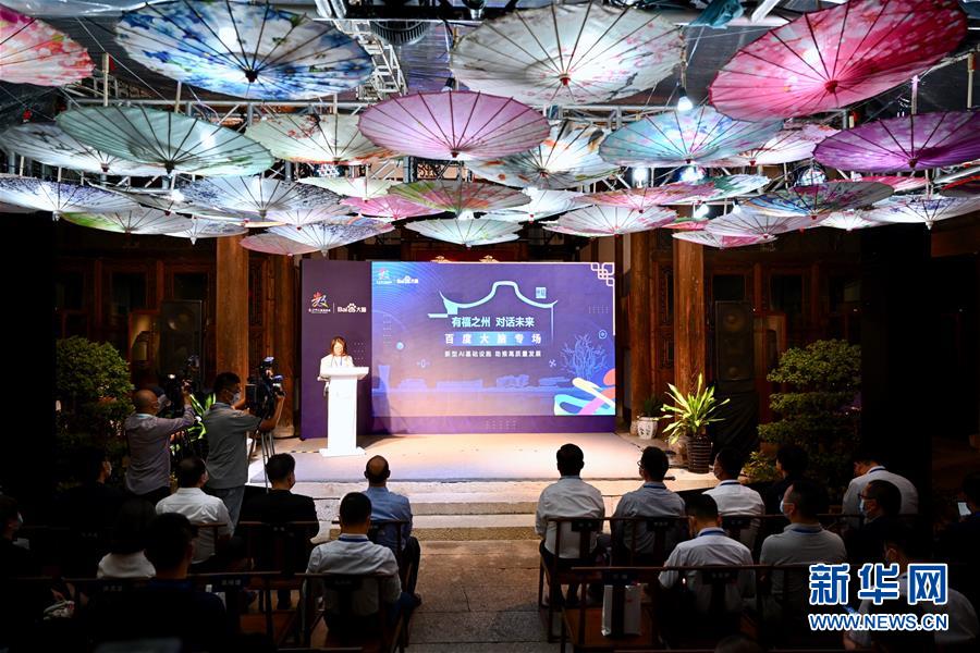 10月11日,在第三届数字峰会“有福之州·对话未来”系列活动上,参加“打造AI新型基础设施,助推高质量发展”百度大脑高峰论坛的嘉宾在演讲。 当日,作为第三届数字中国建设峰会的重要活动,为期四天的“有福之州·对话未来”系列活动在福州三坊七巷历史文化街区拉开序幕。活动邀请两院院士、资深教授、业界专家等共同参与,就数字新经济助力“双循环”、数字时代的城市治理现代化等主题展开讨论,探讨数字技术的发展方向和未来前景。 新华社记者 姜克红 摄