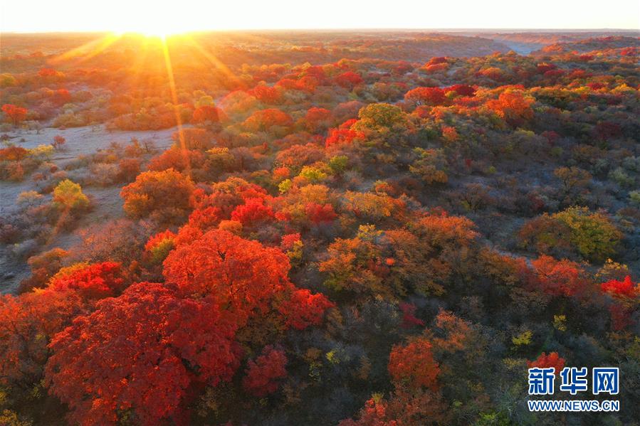 这是10月12日拍摄的大青沟国家级自然保护区秋景(无人机照片)。 眼下,位于内蒙古自治区通辽市科尔沁左翼后旗的大青沟国家级自然保护区秋意正浓,斑斓多彩的秋景令人陶醉。 新华社记者 刘懿德 摄