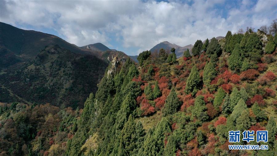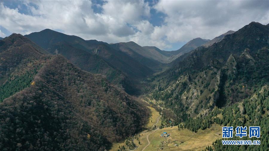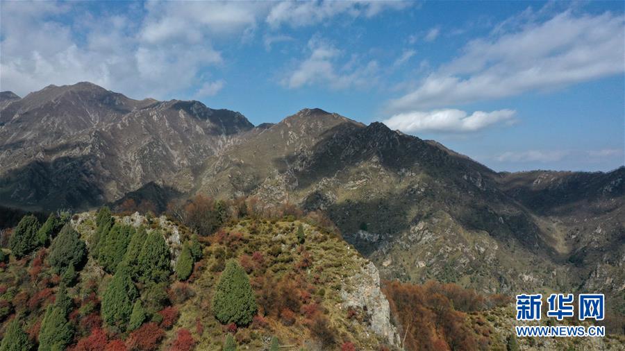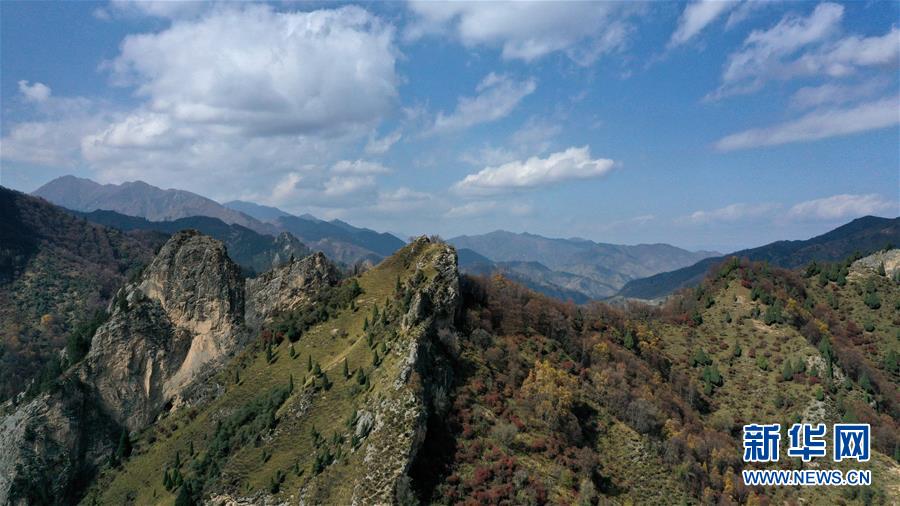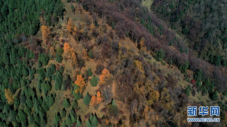 这是10月15日拍摄的北山国家森林地质公园扎龙沟秋景(无人机照片)。 深秋时节,位于青海省海东市互助土族自治县境内的北山国家森林地质公园内,山峦、森林与蓝天组成壮美的秋日画卷。 新华社记者 张宏祥 摄