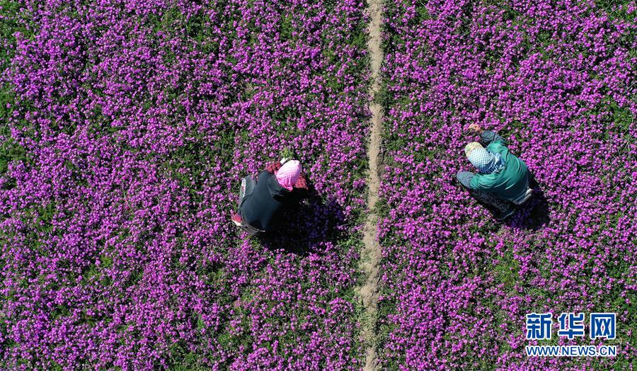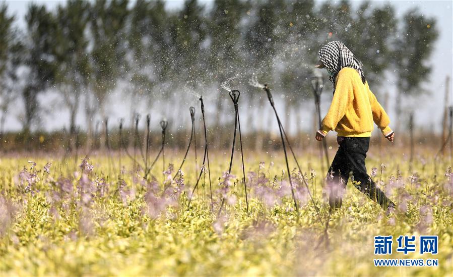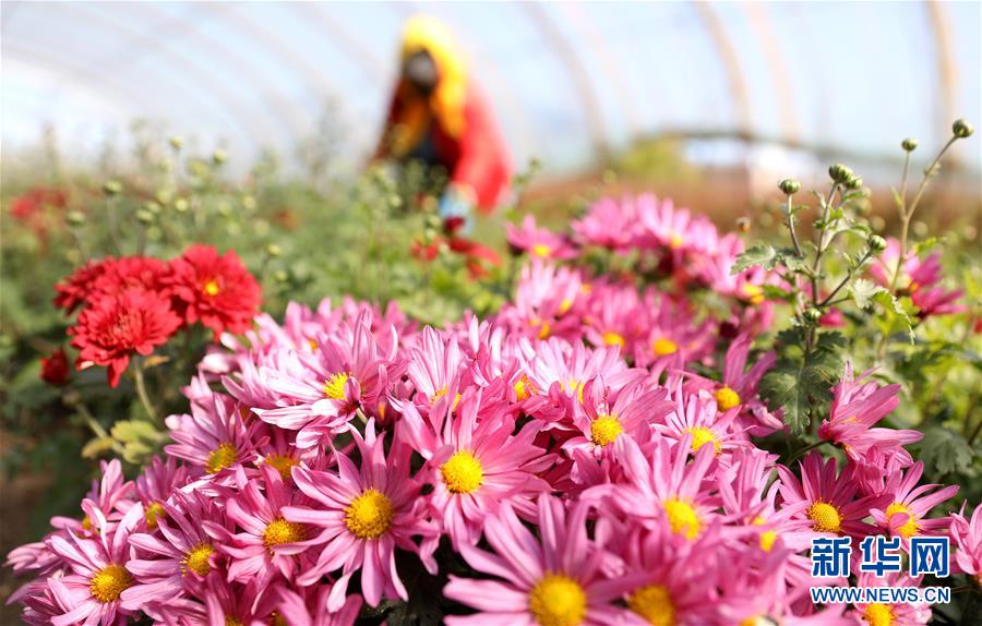10月13日,花农在八角台街道雅化村花圃内进行田间管理。新华社记者 姚剑锋 摄