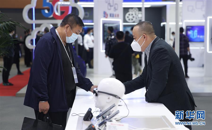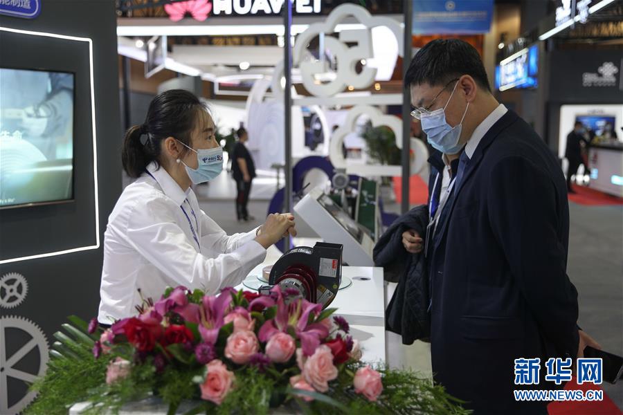 10月18日,参会者在2020全球工业互联网大会创新成果展上参观。当日,2020全球工业互联网大会在辽宁沈阳开幕。大会以“赋能高质量·打造新动能”为主题,聚焦工业互联网在疫情防控和助力企业复工复产中的新业态、新模式,如何促进国内国际双循环发展等热点设置相关议题。 新华社记者 龙雷 摄