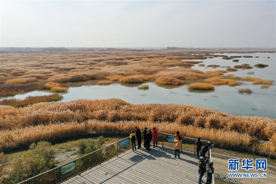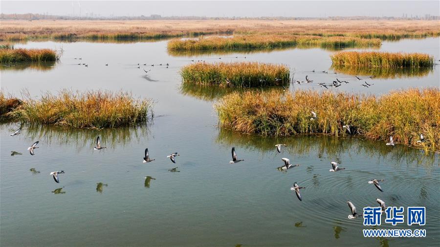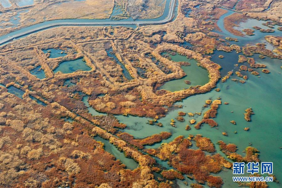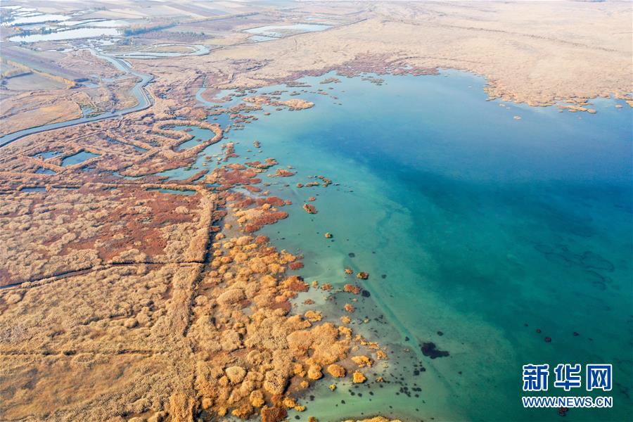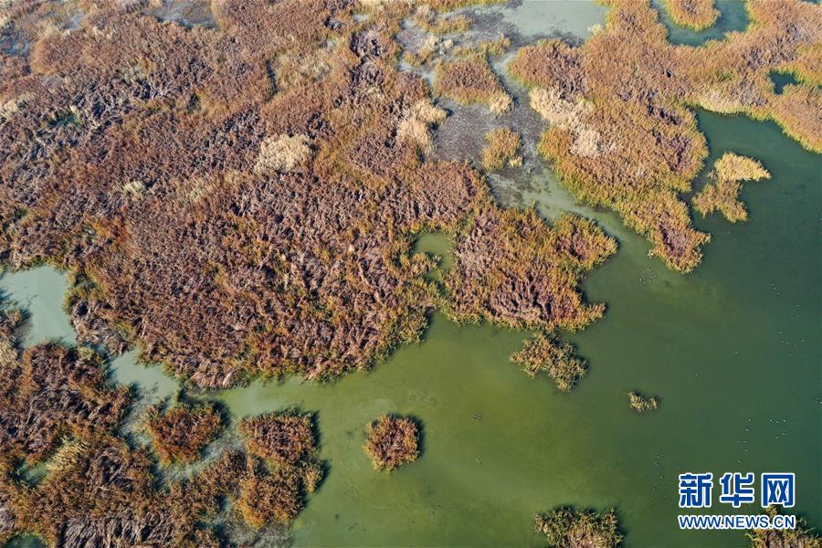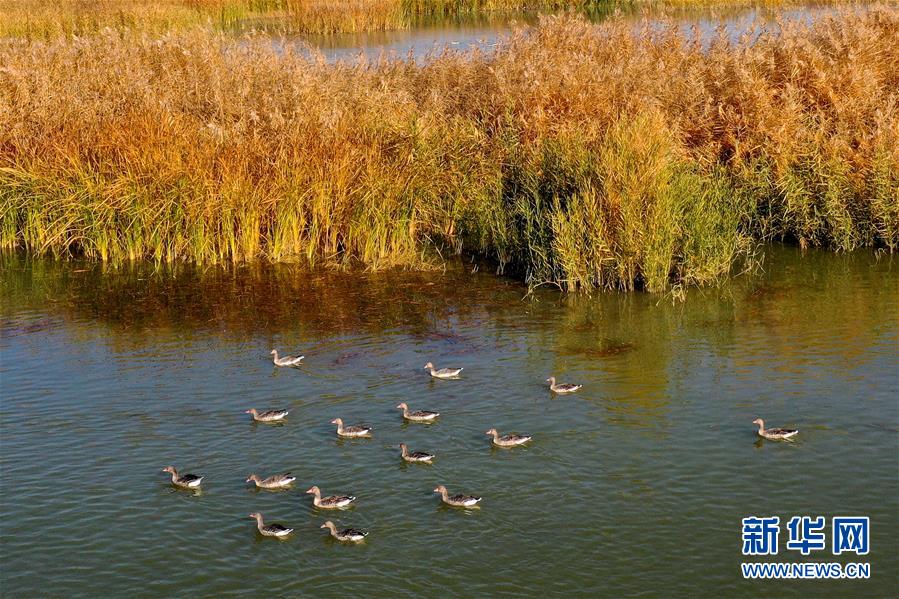 10月18日拍摄的玛纳斯国家湿地公园一景(无人机照片)。 近日,位于新疆昌吉回族自治州玛纳斯县的玛纳斯国家湿地公园景色迷人。玛纳斯湿地是候鸟的重要栖息地和繁殖地。每年秋季,数万只候鸟在此停留歇息,点缀湿地画卷。 新华社记者 丁磊 摄