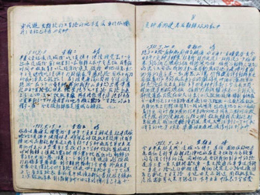 金小华永远忘不了,那年哥哥拿出了几本封面早已陈旧的笔记本,里面写满密密麻麻的文字,哥哥说“这是爸爸的日记”,当成宝贝一样珍藏,还花了很久时间进行修复整理并打印成册。