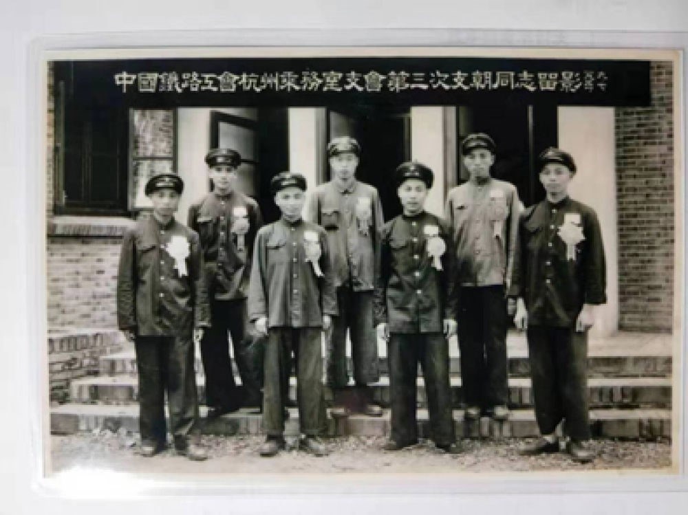 纪录片中,一张印有“中国铁路工会杭州乘务室支会第三次支朝同志留影”的老照片,是1951年金国坤、胡有庭等7人换下制服,穿上军装,奔赴朝鲜前的一张合影,左一的胡有庭稚气未脱,在他身后,左二的金国坤英俊潇洒。