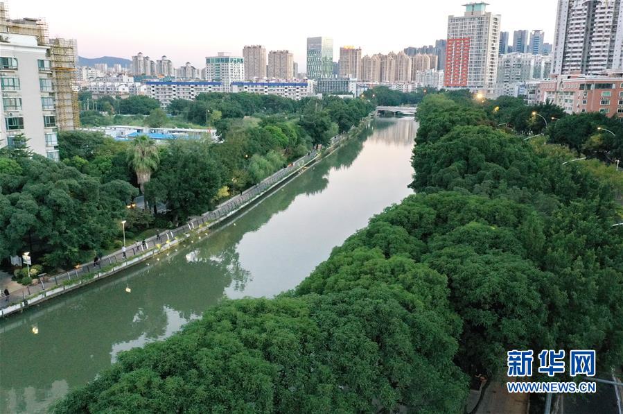 这是10月26日拍摄的福州流域面积最大的城市内河——晋安河沿岸景观(无人机照片)。金秋十月,漫步福州城区、内河两岸,满眼是郁葱的绿树,紫色的三角梅、粉色的美丽异木棉等也竞相绽放。榕城处处呈现生机活力、绚丽多姿的秋日浪漫。 新华社记者 林善传 摄