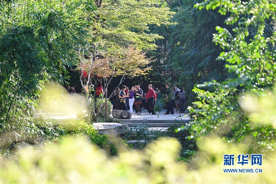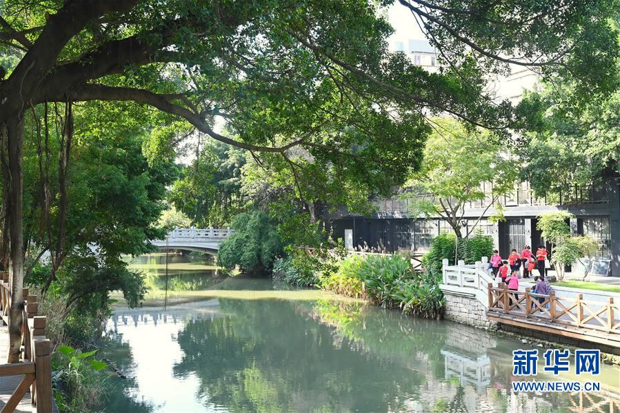 10月27日,市民在绿树掩映的福州白马河畔串珠公园里晨练。金秋十月,漫步福州城区、内河两岸,满眼是郁葱的绿树,紫色的三角梅、粉色的美丽异木棉等也竞相绽放。榕城处处呈现生机活力、绚丽多姿的秋日浪漫。 新华社记者 林善传 摄