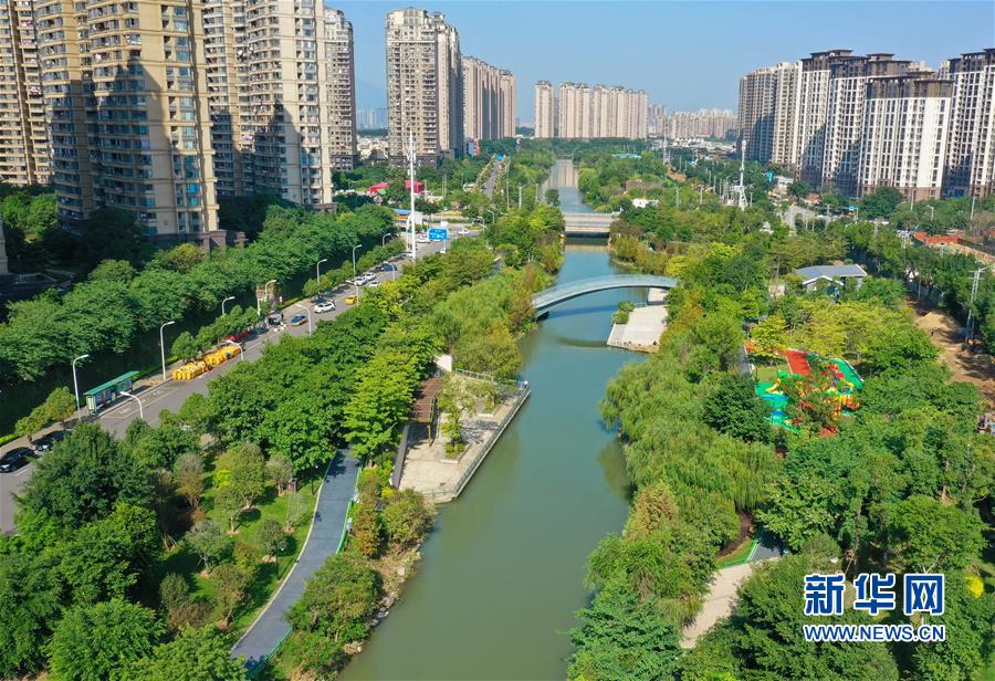 这是位于福州市仓山区的流花溪沿岸景观(无人机照片,10月23日摄)。金秋十月,漫步福州城区、内河两岸,满眼是郁葱的绿树,紫色的三角梅、粉色的美丽异木棉等也竞相绽放。榕城处处呈现生机活力、绚丽多姿的秋日浪漫。 新华社记者 林善传 摄
