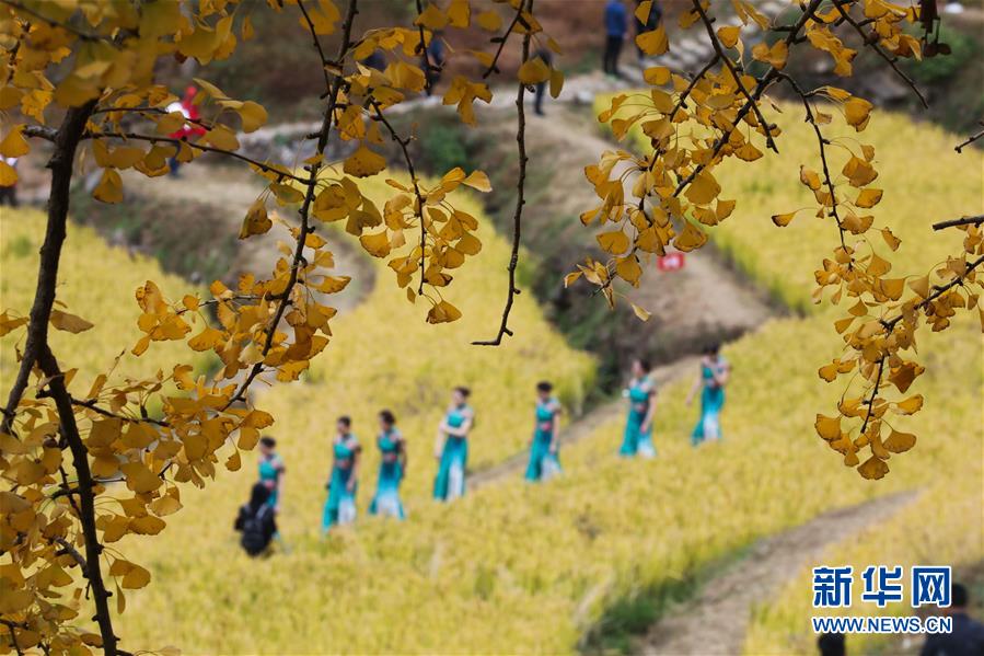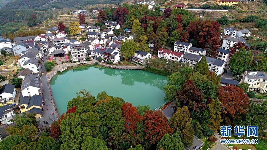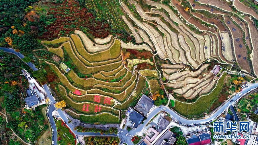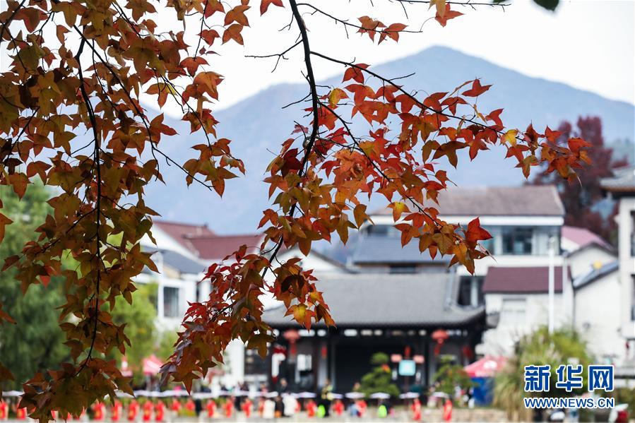 红叶为秋日山村增添了亮丽的色彩(11月1日摄)。 11月1日,“指南红叶节”活动在浙江省杭州市临安区太湖源镇指南村举行。本次金秋红叶节将举行观赏金秋红叶梯田、梯田稻谷收割、古戏台银杏音乐会、山顶星空露营帐篷节等系列主题活动。 指南村海拔近600米,森林覆盖率达93%以上。每到深秋,村落周边的千亩梯田、金黄的银杏和火红的枫树将指南村装扮得美如画卷。 新华社记者 徐昱 摄