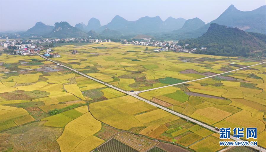 日拍摄的广西柳州市柳江区进德镇泗浪村的稻田(无人机照片)。新华社发(黎寒池 摄)