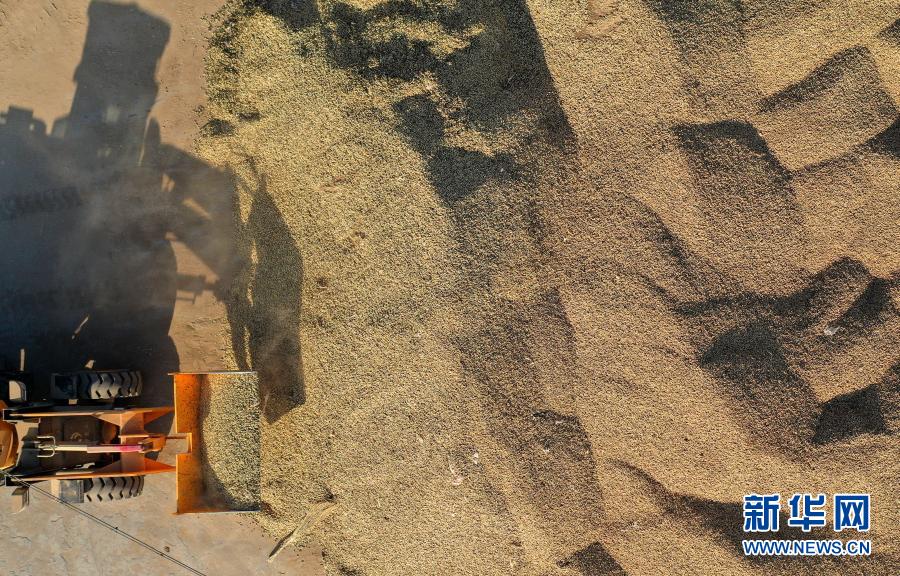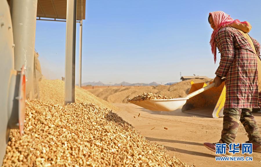 在辽宁省锦州市义县张家堡镇官场沟村一家农业企业里,一名工人将收获的花生装入分拣机(11月4日摄)。新华社记者 姚剑锋 摄