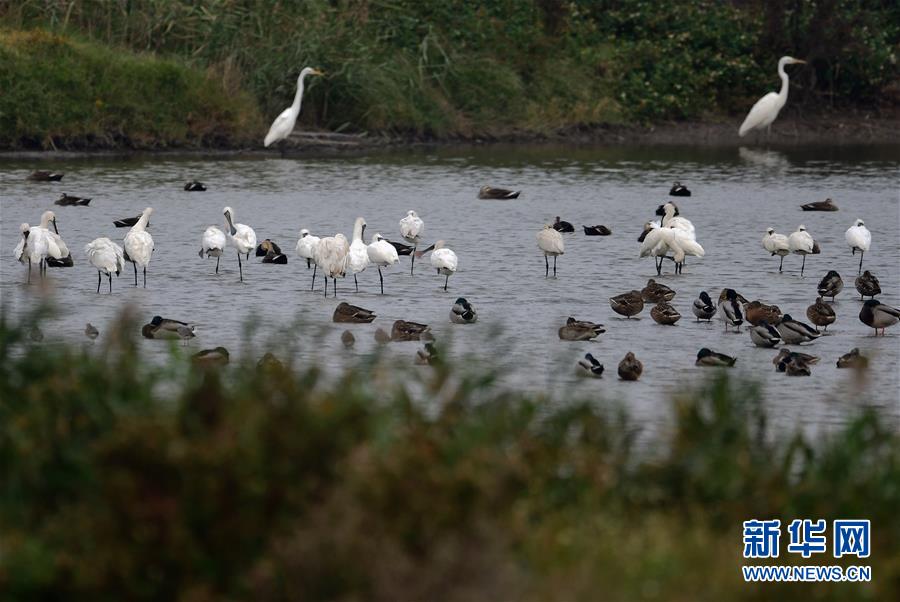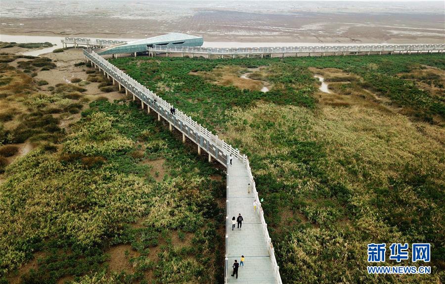 这是11月8日拍摄的闽江河口国家湿地公园(无人机照片)。 闽江河口国家湿地公园位于福建省福州市长乐东北部闽江入海口,以河口浅滩为主,为闽江流域多年沉积形成的大片潮间沙滩和泥滩。这里是候鸟迁徙重要越冬地、水鸟集中分布区和众多珍稀濒危鸟种的栖息地,公园内动植物种类繁多,每年有数以万计的候鸟来此栖息越冬。 新华社记者 魏培全 摄