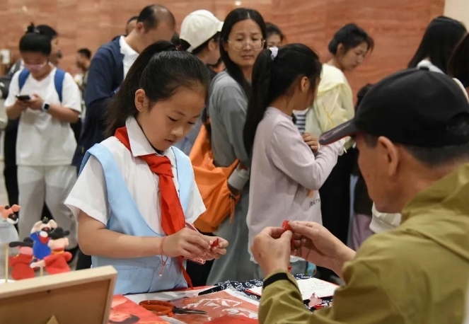 活动现场,剪纸项目非物质文化遗产代表性传承人耐心指导,剪出红军帽、五角星等图案,在感受传统技艺的同时,也传递着对英雄的敬仰和对和平的向往。一位参与活动的小朋友兴奋地说:“我做的剪纸作品上有五角星,这是英雄的象征,我要把它带回家。”