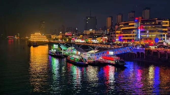 端午假期,鸭绿江畔夜间游览项目迎来游客高峰。