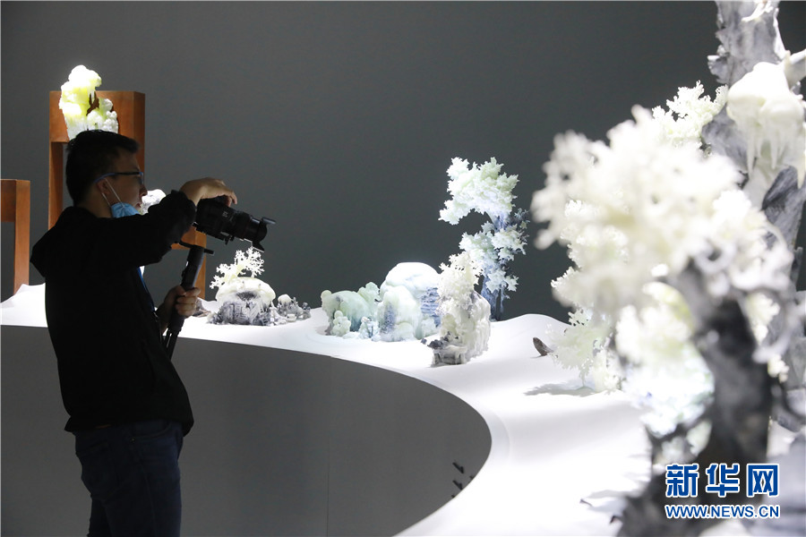 图为参观“中国·鞍山书画和岫岩玉玉雕精品展”的观众。新华网发