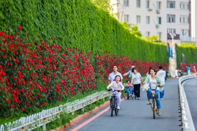 这条千米花墙,将生态景观、休闲健身与城市浪漫完美融合,不仅装点了城市容貌,更让“人在花中行”的诗意体验成为丹东初夏最独特的风景。