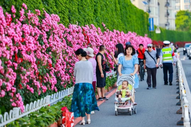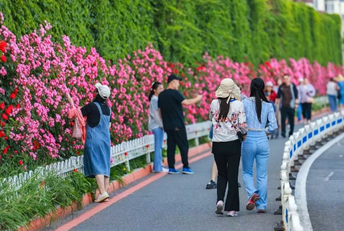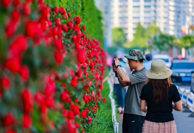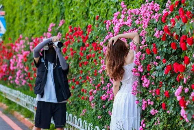 大片盛放的蔷薇花将城市点缀得如诗如画,吸引了大量市民和游客驻足拍照,打卡留念,共同感受这份属于初夏的限定浪漫。漫步其间,如同置身花海,人与花共舞,流动的画卷成为这座城市最具诗意的初夏印记。