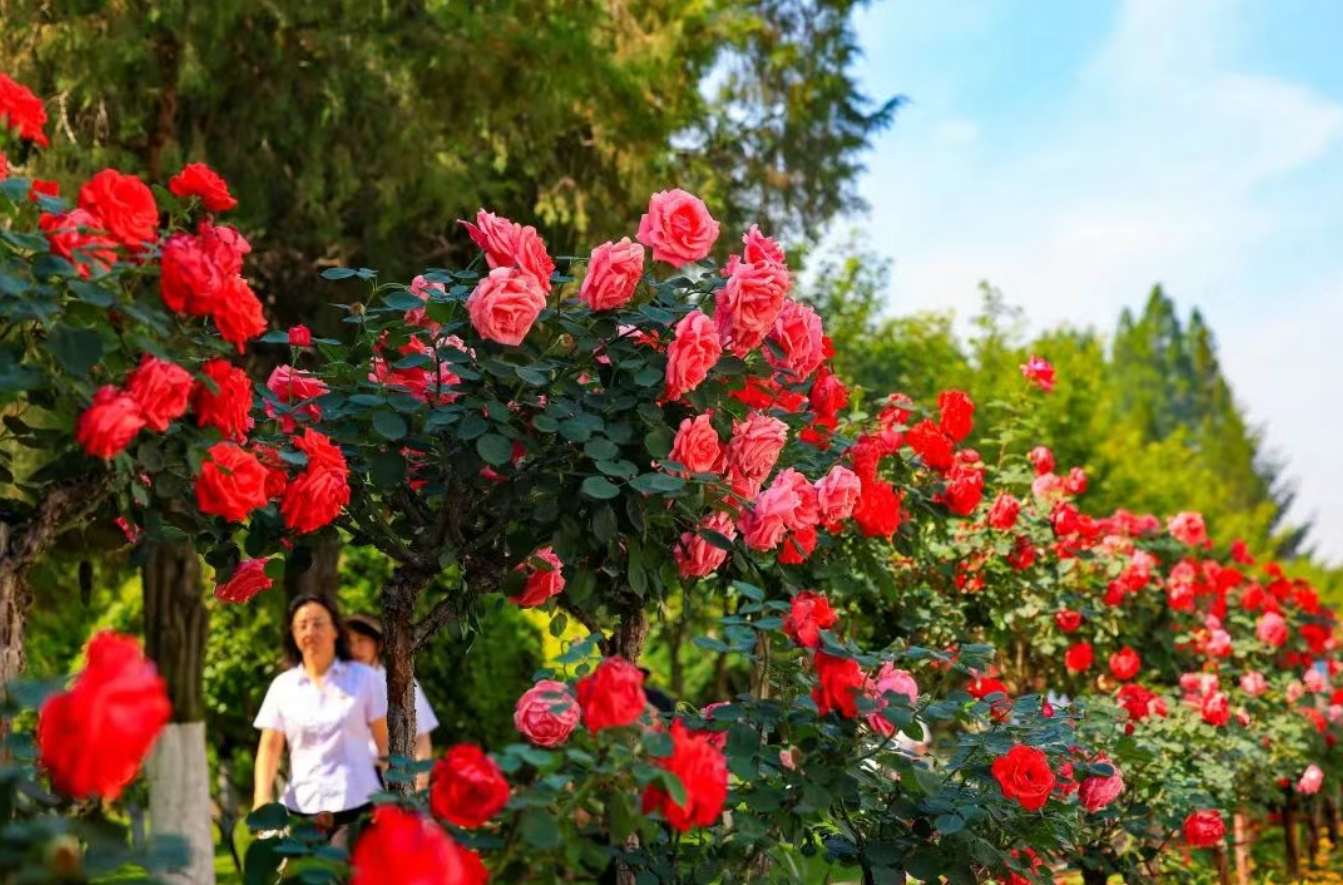月季娇艳大方,花朵直径可达数厘米,层层花瓣鲜嫩饱满,在阳光下散发出柔和的光泽。一阵微风吹过,淡雅的香气扑面而来,吸引市民和游客纷纷驻足拍照、打卡留念。