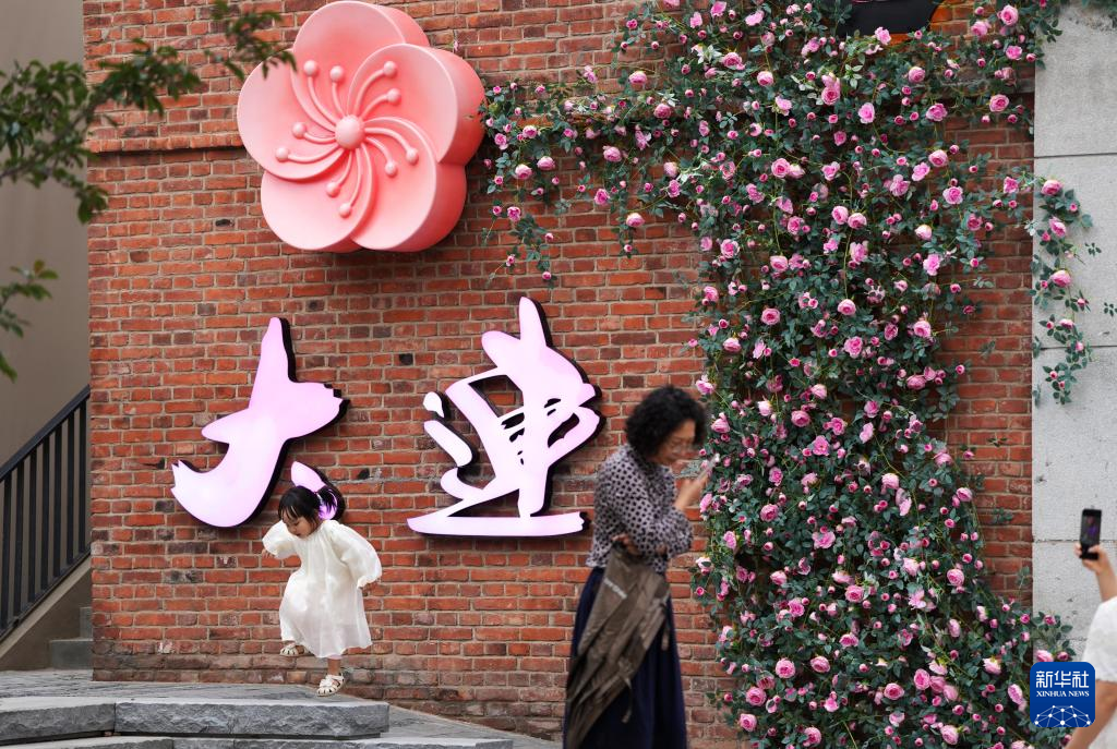 游客在大连东关街历史文化街区打卡拍照(6月13日摄)。