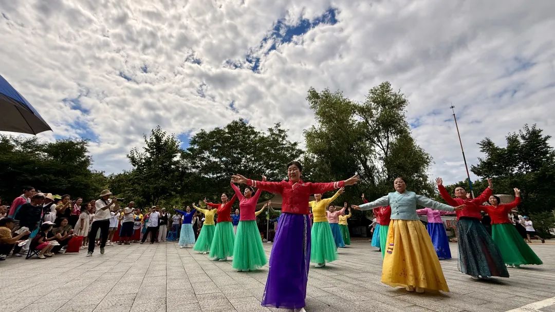 在文艺演出环节,民族器乐合奏《嗡嘿呀》激昂开场,男声独唱《唱夫打令》、女声独唱《鸟打令》唱响浓浓乡音;舞蹈《拾贝壳的姑娘》《薄片舞》以灵动舞姿展现朝鲜族风情;民俗歌舞《丹东朝鲜族花甲礼》则将演出推向高潮,掌声、喝彩声此起彼伏。