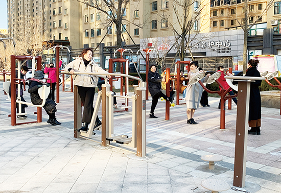 11月24日,元宝区智慧体育公园里,众多市民在健身锻炼,不时传来欢乐的笑声。