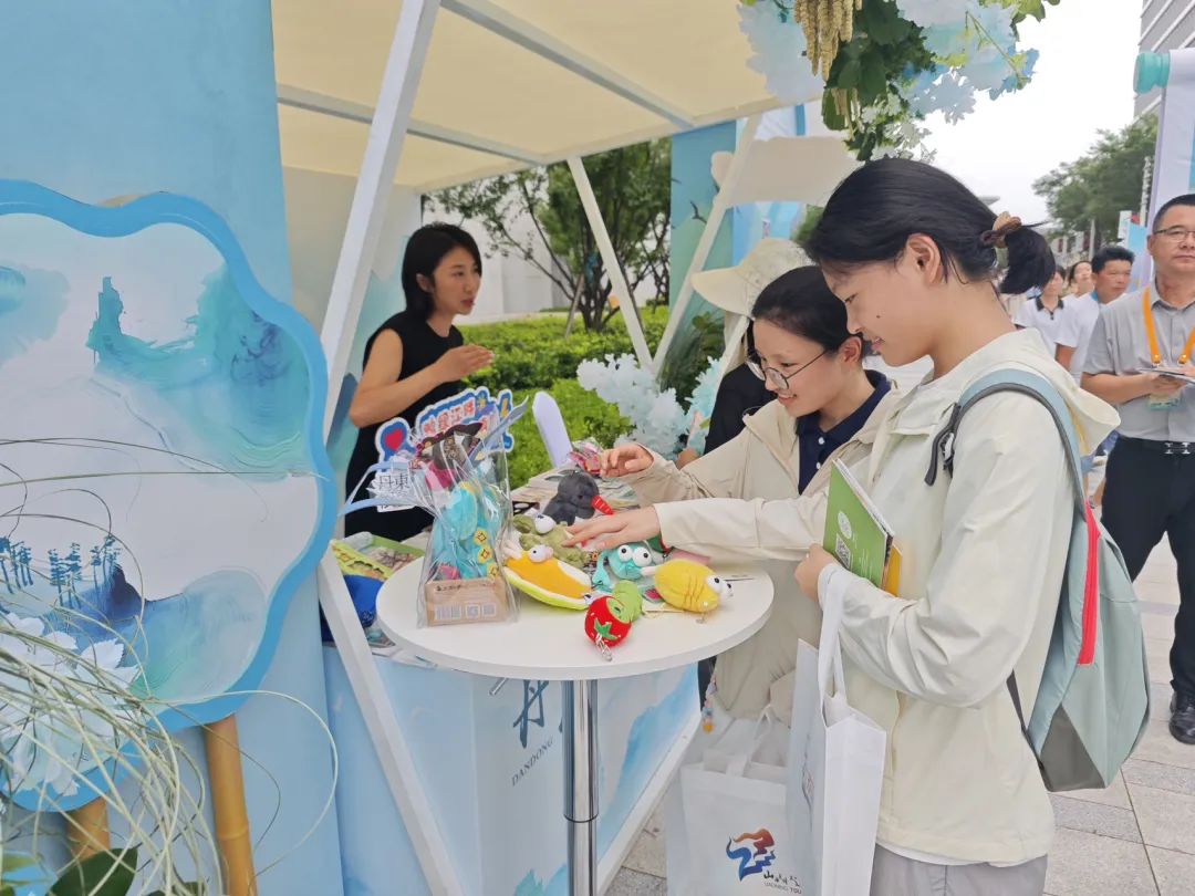 在丹东文旅展位上,文创产品成为吸睛焦点。其中,融合丹东海洋美食元素的文创礼品格外抢眼——以黄蚬子、梭子蟹为灵感设计的挂件、冰箱贴,以及印有特色海鲜图案的丝巾、餐具套装,兼具地域特色与实用性;融入“候鸟”元素的毛绒玩具造型憨态可掬,吸引了众多游客驻足观看,深受喜爱。