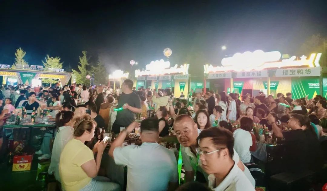 傍晚时分,活动现场人头攒动。欢快的音乐与市民游客的欢声笑语交织,啤酒的清爽麦香与各式美食的香气在空气中弥漫,浓厚的欢乐氛围感染着在场的每一个人。市民游客三五成群围坐一桌,举杯畅饮,碰杯声、谈笑声与舞台音乐相互交融,勾勒出一幅生动鲜活的夏夜生活画卷。