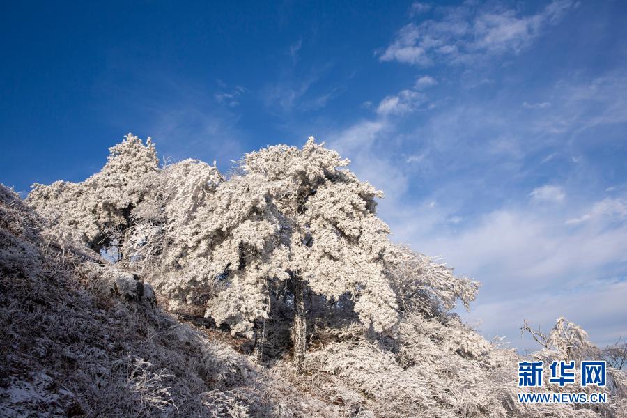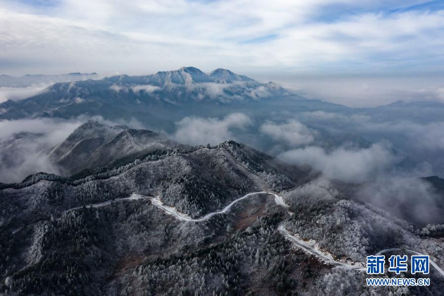 11月28日,地处大别山腹地的安徽省六安市霍山县大化坪镇迎来降雪。雪后的山林银装素裹,仿佛童话世界。新华社发(徐程 摄)