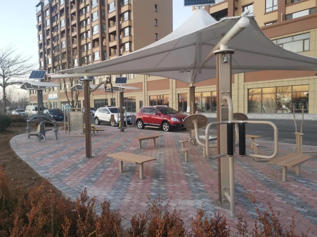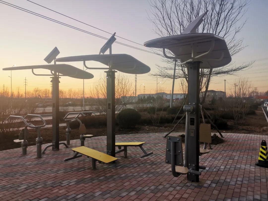 “你看这些健身器材有太阳能遮阳棚,还有专属的二维码和显示屏,我们来健身不仅不会被日晒雨淋,还可以查看自己的运动数据,更有意思的是,累了还能听歌放松。”李海欣喜地说,“这里和健身房的功能差不多,不同的是来这里健身完全免费。”