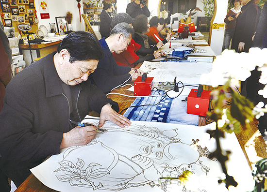 为让广大市民近距离了解非遗,振兴区站前街道党工委在七经街设立了非遗文化传承馆,非遗传承人定期在这里表演、展示。图为日前非遗烙画传承人在现场作画。记者 宋永昆 摄