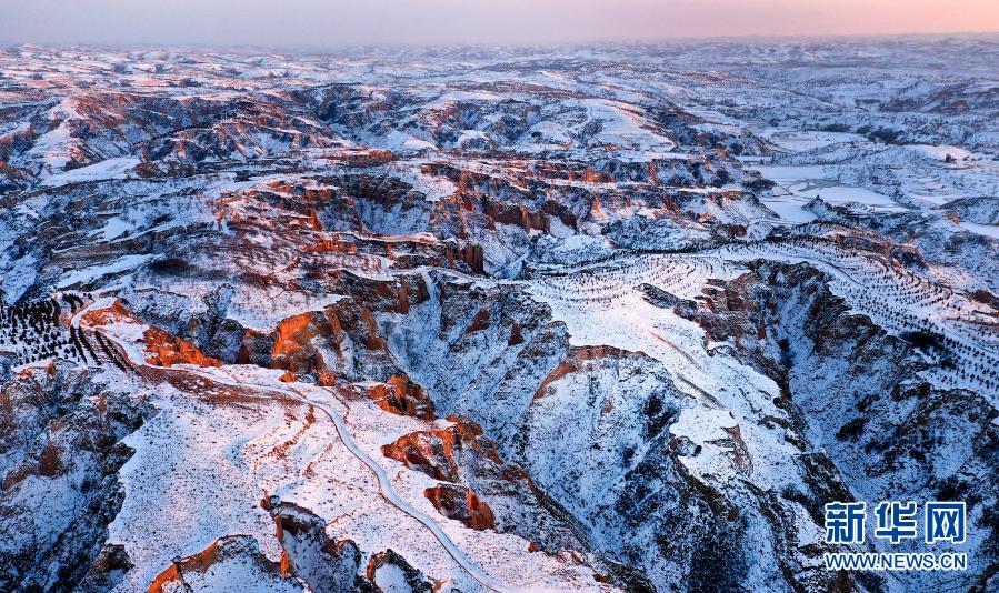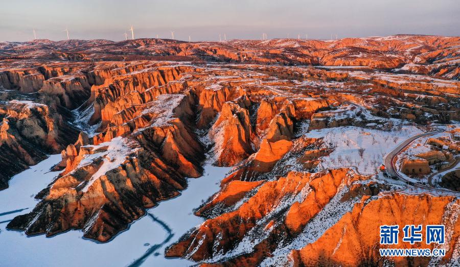 当日,位于黄土高原的陕西省榆林市麻黄梁黄土地质公园雪后初霁,美景如画。麻黄梁黄土地质公园总面积37平方公里,厚重的黄土层历经千百年风雨的冲刷,形成了奇特的地貌景观,令人叹为观止,成为人们旅游、摄影的好去处。
