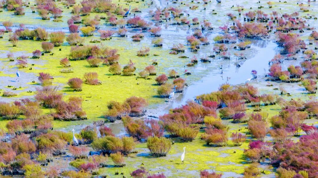 自9月中旬以来,鸭绿江口湿地迎来一年中最绚丽的季节。这片位于北黄海的滨海湿地,正呈现出色彩斑斓的生态画卷:赤、橙、黄、绿交织的滨海植被,与多种候鸟构成了一道靓丽的风景线。