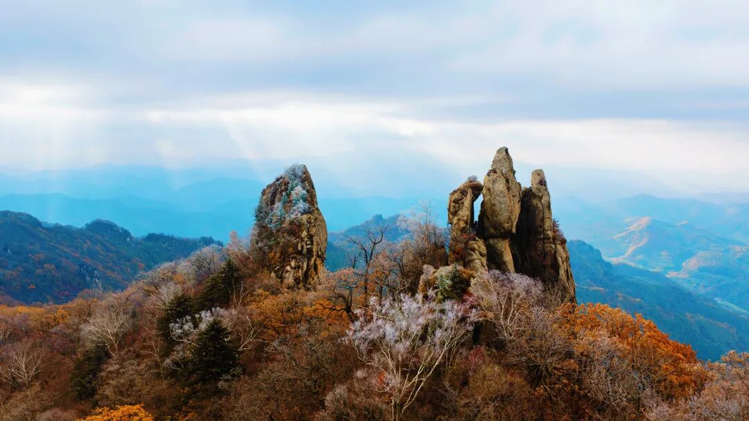 当晨曦微露,游客们惊喜地发现,昔日色彩斑斓的山岭仿佛在一夜之间被施了魔法。原本火红、金黄的枫树、桦树枝头,凝结了厚厚一层洁白的冰晶,形成了美丽的雾凇。