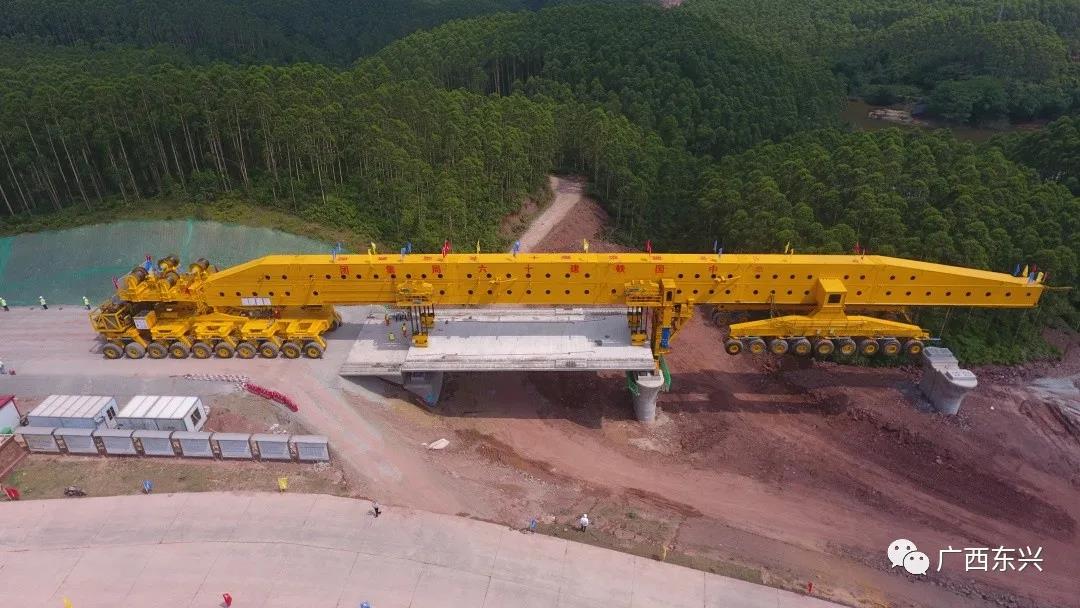 △防东铁路是我国中越互联互通国际通道的重要组成部分。图为防东铁路箱梁架设现场。周才圣/摄