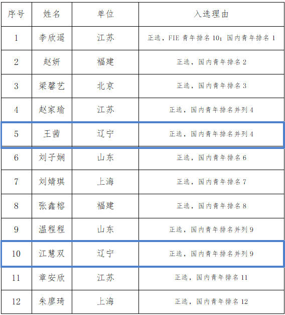 由丹东市体育运动学校培养输送到辽宁省击剑队的两名丹东姑娘王茜和江慧双成功入选。