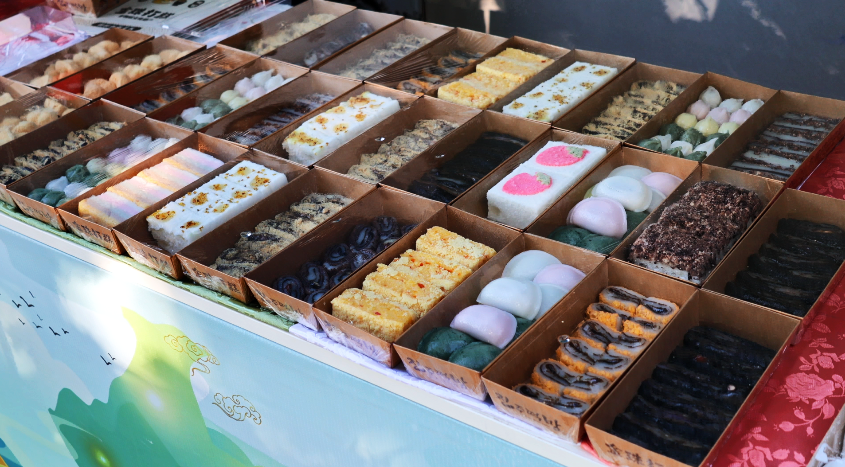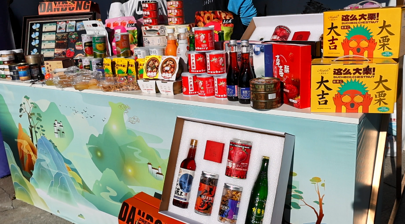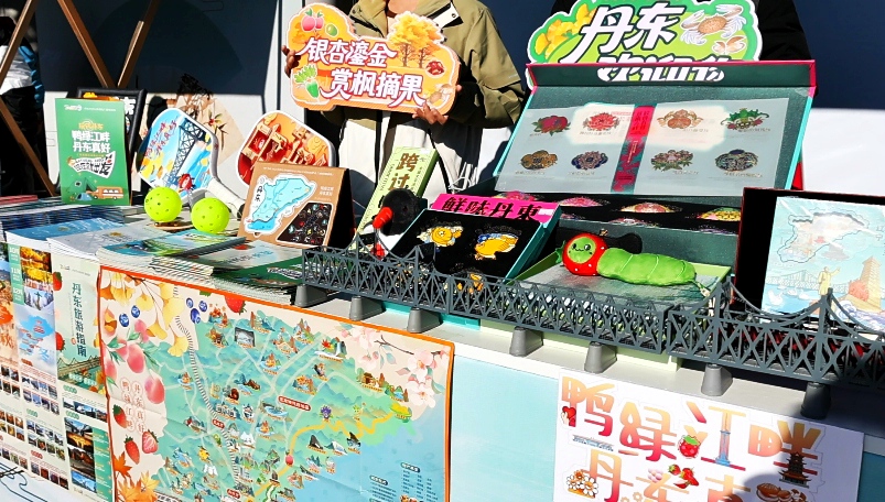 场外,匹克球赛事的热度无缝延伸至文旅展示区。市总工会联合市文化旅游和广播电视局、市商务局,在赛场外设置了10个特色展台,集中推介丹东特产与非遗文化。文创产品区陈列着丹东旅游四季折页、手绘地图,以及以当地美食为灵感的“润彩艺术”系列文创,吸引了不少人驻足欣赏;农副产品区则展出了五四农庄的越光米、软枣子等本地特产,这些优质产品不仅展示了丹东的生态优势,更成为“舌尖上的名片”。