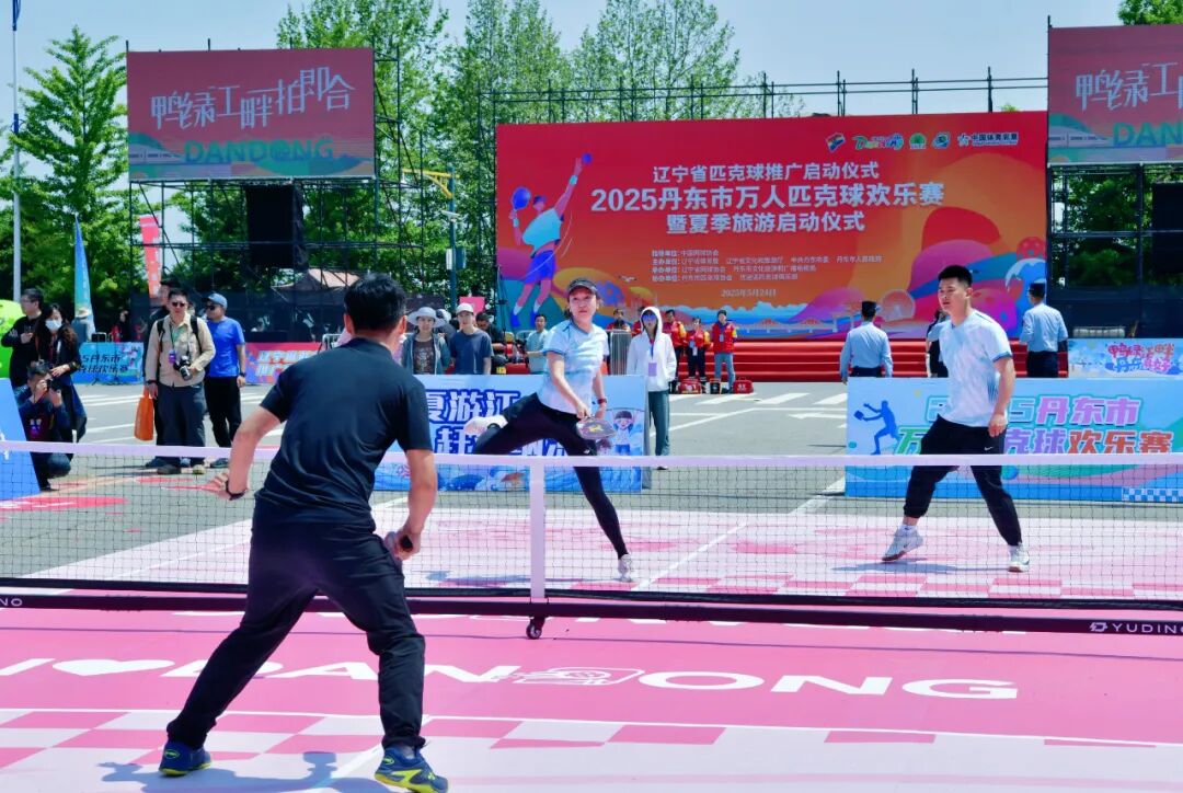 今年5月24日,由中国网球协会指导,辽宁省体育局、辽宁省文化和旅游厅、丹东市委、丹东市政府联合主办的“辽宁省匹克球推广启动仪式・2025丹东市万人匹克球欢乐赛暨夏季旅游启动仪式”在鸭绿江畔举行,万人齐声合唱《中国人民志愿军战歌》《我的祖国》,万名各界群众与运动员同场竞技。