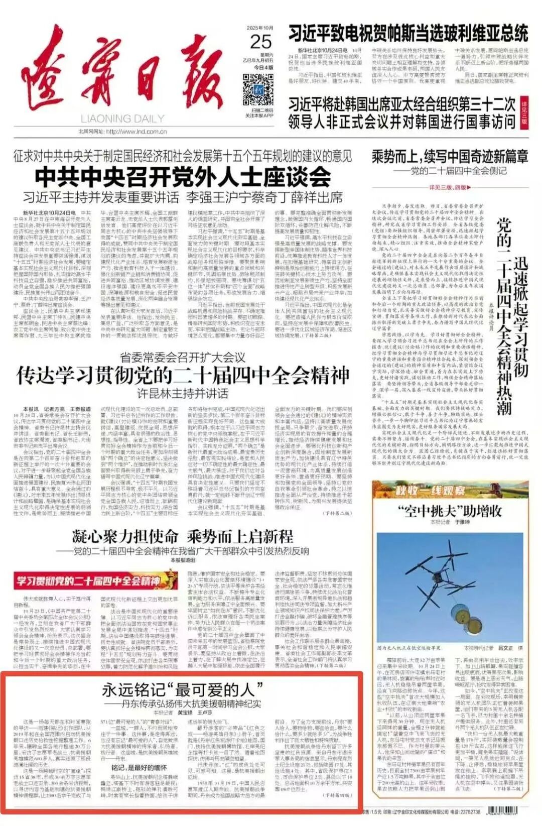 10月25日出版的辽宁日报,以《永远铭记“最可爱的人”——丹东传承弘扬伟大抗美援朝精神纪实》为题,重点报道了丹东在跨越时空、历久弥新的伟大抗美援朝精神指引下,不断守正创新,奋力续写“英雄城市”的坚实步伐。