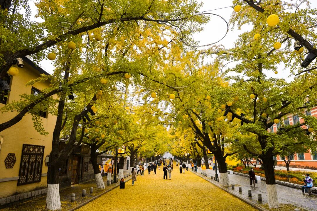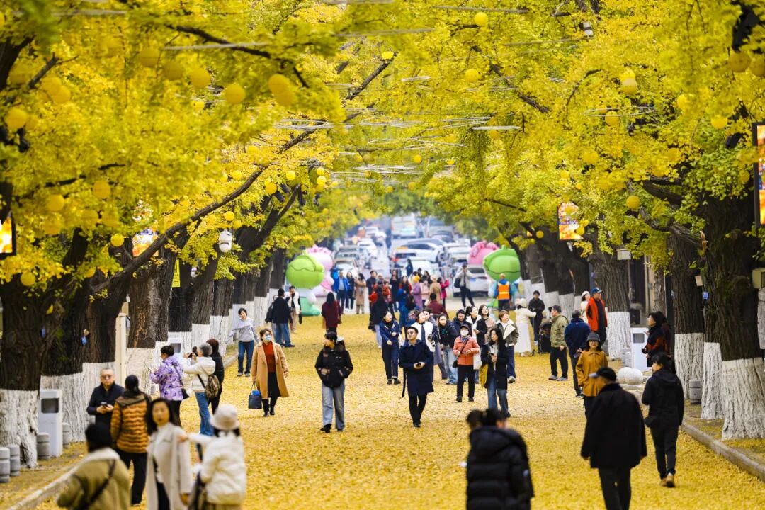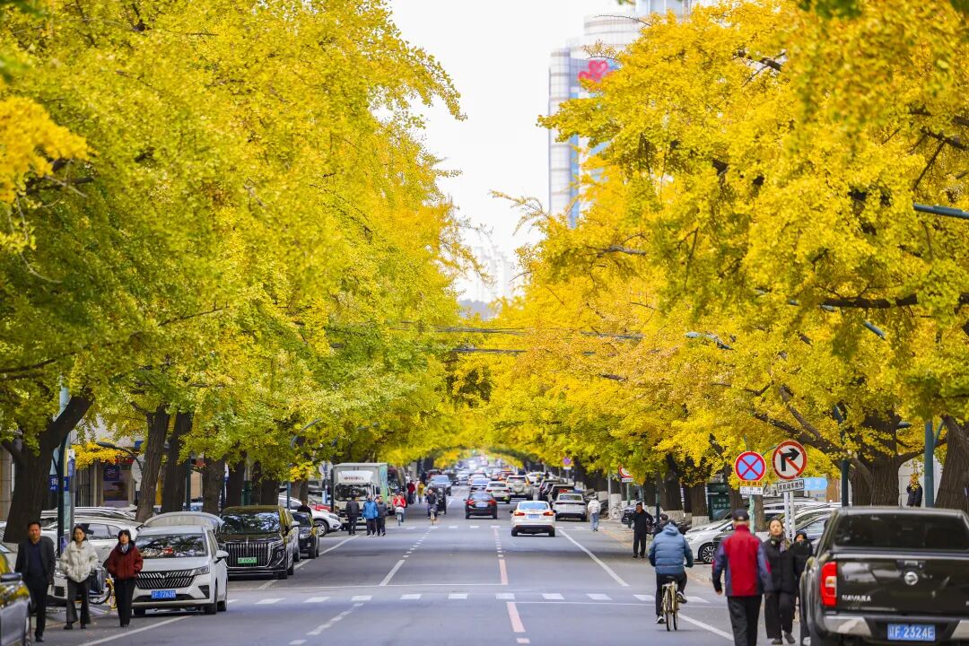 沿街千余株古银杏褪去绿装、换上金衣,将城市打造成梦幻的金色世界,这般限定美景错过需再等一年。