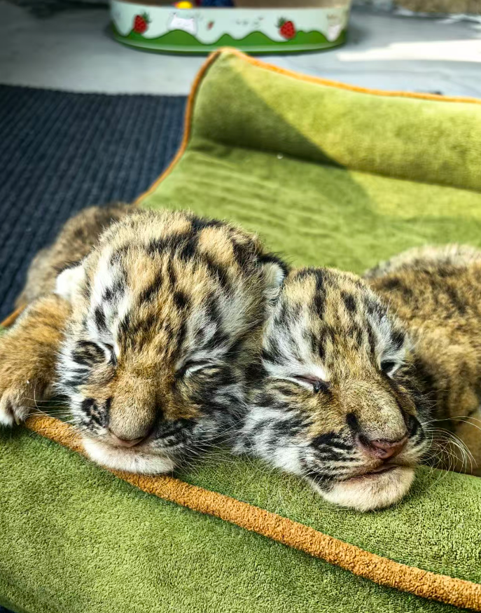为保障新生动物健康成长,园区量身定制了专属照料方案:水豚宝宝以母豚贴身照料为主,通过母乳获取营养,充分尊重其天然育幼规律;对于小东北虎,则采取“人工育幼”的精细化模式,充分考虑幼崽生长初期对营养的高需求,每日按精准比例调配奶粉,定时定量喂食,并监测育幼环境温度等,全方位为幼崽打造安全、舒适的成长条件。