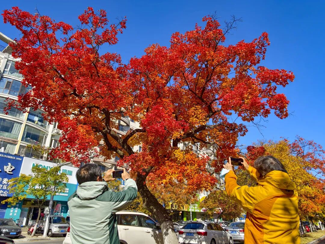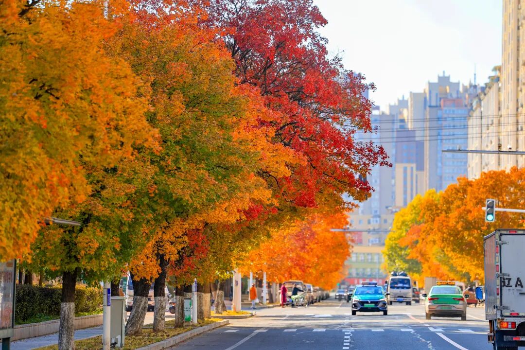 目前,振八街的枫叶正处于最艳丽的阶段。近年来,我市持续推进城市绿化美化工程,打造了一批特色景观街道。
