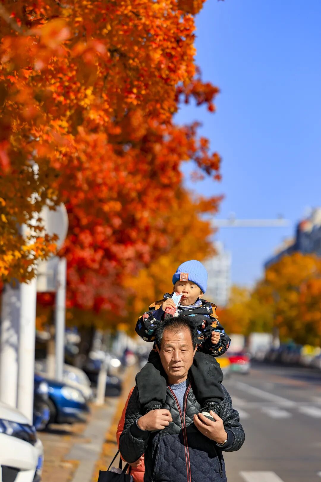 行走在街道上,仿佛步入一幅流动的红叶画卷:抬头是如火如荼的树冠,低头是铺满落叶的 “地毯”,空气中弥漫着草木的清香,令人沉醉不已。