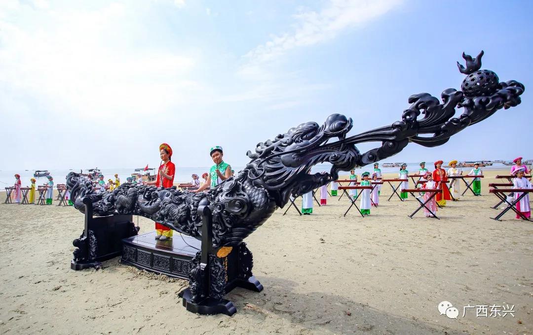 △余音绕梁的京族百人独弦琴吸引着游客。黄天福 摄