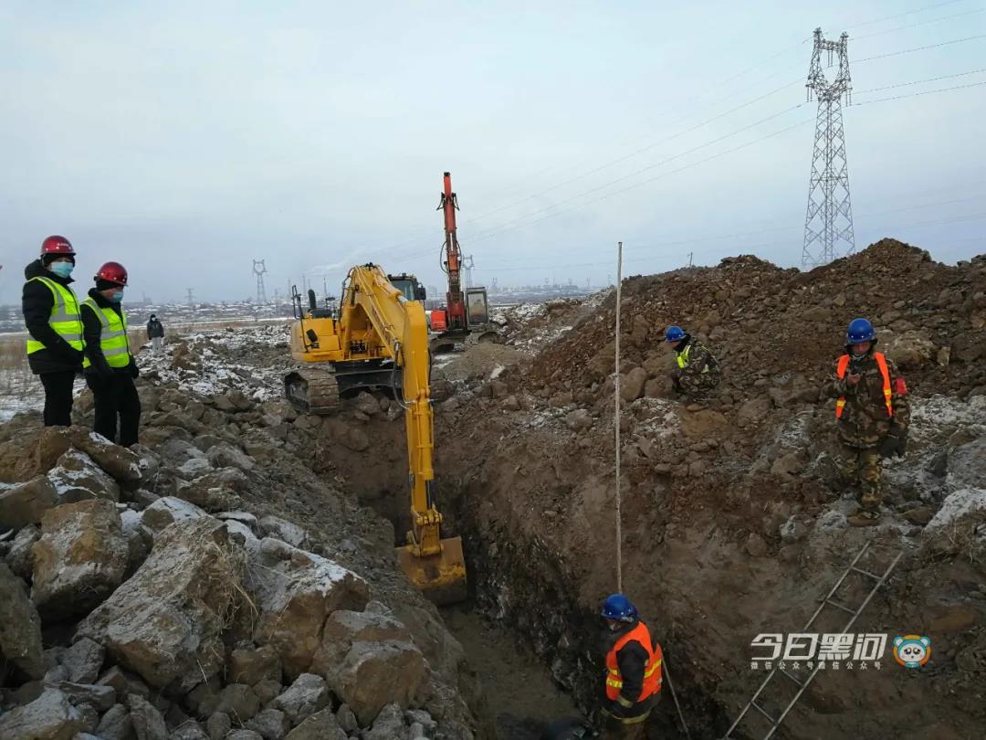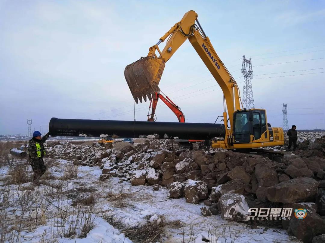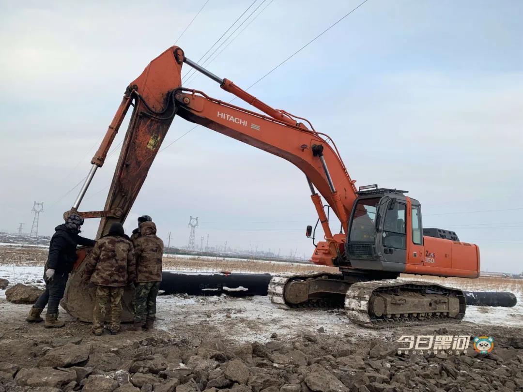 1月18日,气温接近零下30度。小编来到北黑铁路(龙镇至黑河段)升级改造项目建设的施工现场看到,挖掘机轰鸣,各类工程车有序地来往穿梭,20多名工人穿着厚厚的大衣,戴着口罩和翻毛的帽子,头发和睫毛上挂满霜花,正在进行自来水管线迁移工程施工。